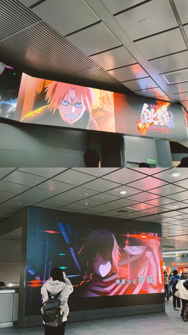 これは新宿駅のデジタルサイネージ。南改札コンコースでは14日までの1週間、あたり一面銀魂まみれだった。