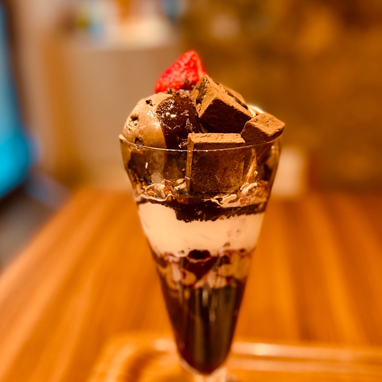 ▲肉体労働での消費カロリーがエグすぎてへろへろだったので帰りにナナグリの期間限定パフェ『ほうじ茶ショコラストロベリーパフェ』。アイスも生チョコもソースもゼリーもほうじ茶で、ほうじ茶好きにとってはかなり最高。