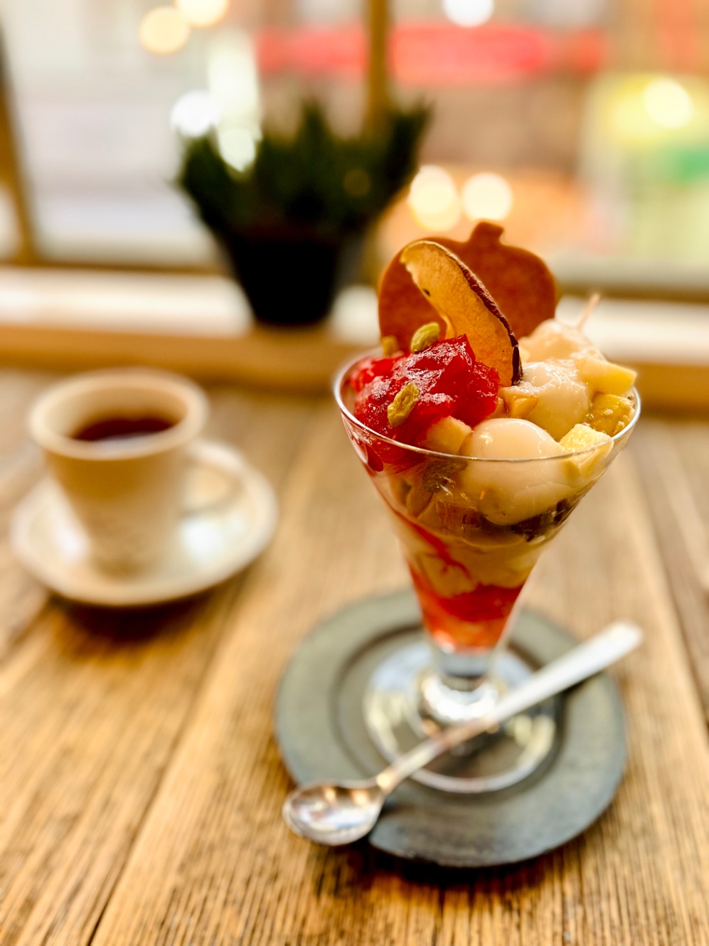 外が見えるカウンター席に座ったら、向かい側にあるベトナム料理のお店の中がくっきり見えてパフェ待ってる間の暇つぶしにガン見してしまった。私は紅茶と甘いものは大好きだけど基本的に食の偏差値が低い(食べたことのないものが多すぎる)のでベトナム料理ってどんな感じなんだろう……と考えながらぼーっと眺めるの楽しかったな。