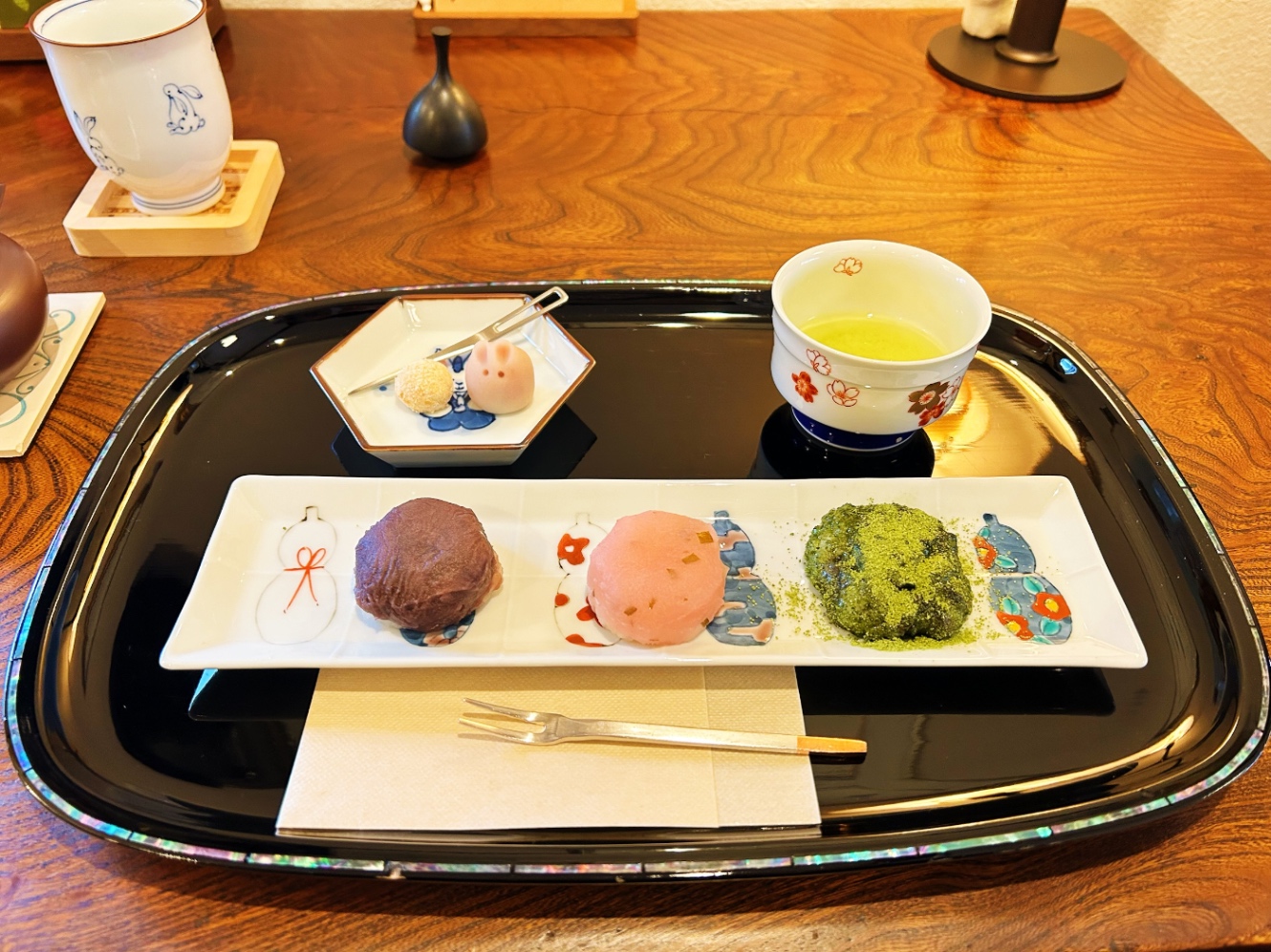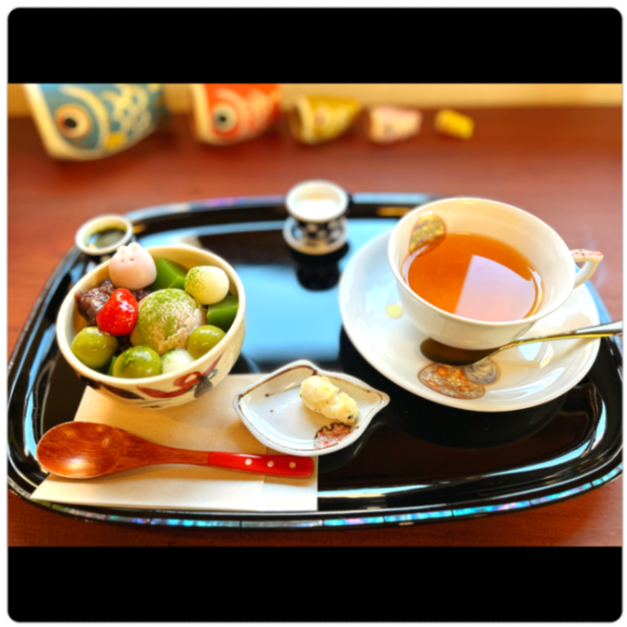 ▼好きな日本茶カフェ いつもお皿が違ってて楽しい▼