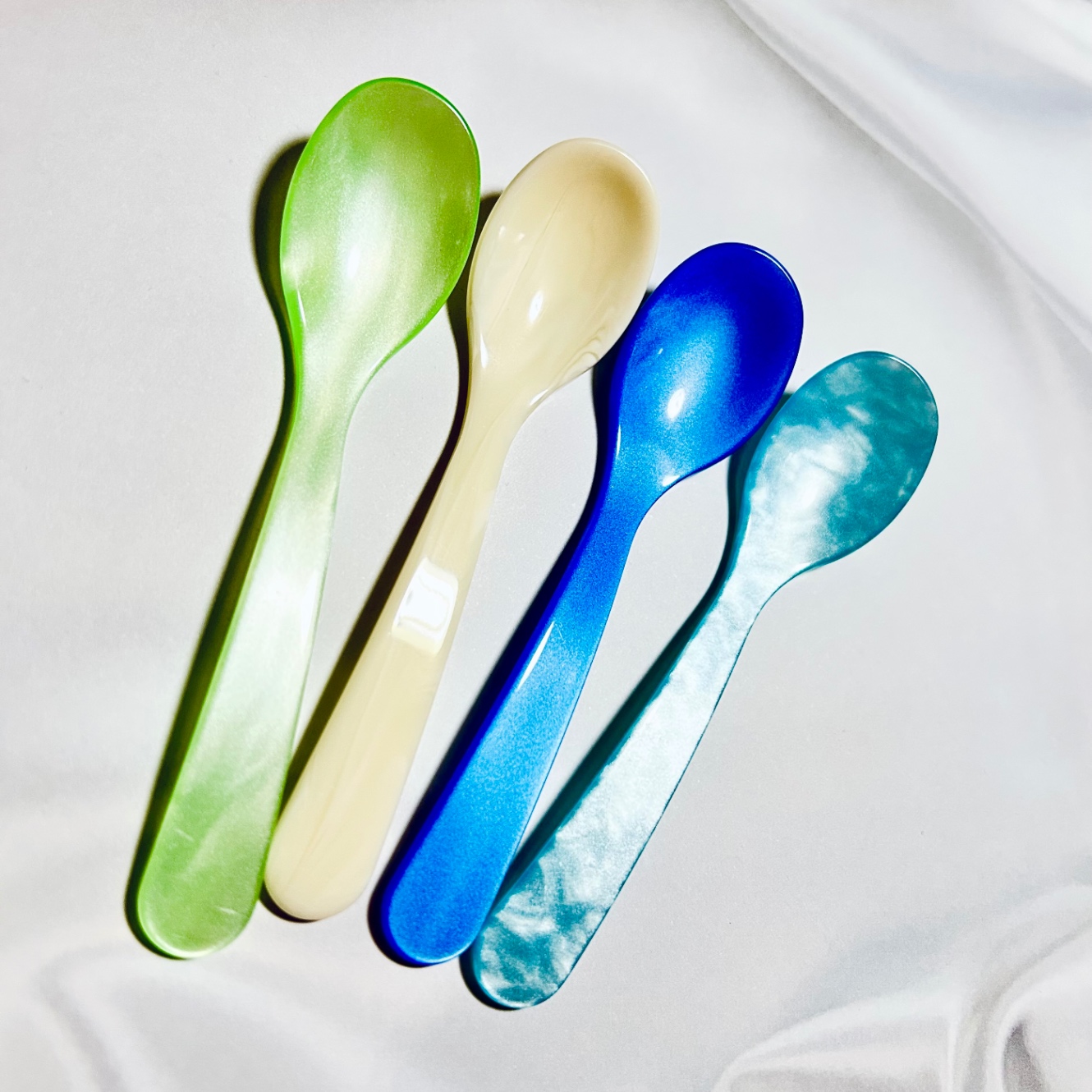 1862年創業……って日本は江戸時代末期だ。当時は鼈甲工場だったらしいけど、亀を保護しないとってことで鼈甲やめてアクリル素材を扱うようになってから90年……とのこと。手触りとか口当たりとかめっちゃ気持ちよくて、最近ヨーグルトとかアイスとか全部これで食べてる。エッグスプーンの名の通り、ゆで卵の殻ぜんぶむくのめんどいな〜みたいなときもこれでほじくり出して食べてる。夏のお店には夏っぽいカラーしかなく、今は暖色系がすごくほしい。黄色オレンジ赤ピンクあたりがほしい。
