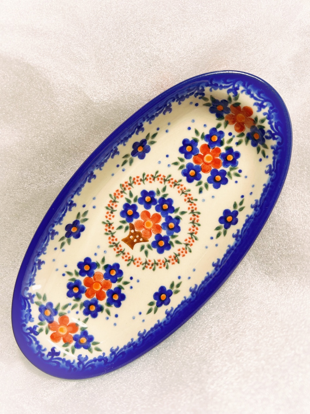 カヌレとかマカロンとか、小さなクッキーとかチョコとか、そういうちまちまっとしたお菓子をのせて食べるオーバルの小皿。「ひとつひとつが手作業で絵付けされているため、どれひとつとして同じものがない」ということなので、深夜に紙コップでアゲハ蝶している人種にはちょっとドキドキするお値段だけど、ポーリッシュポタリーは手作りの食器の中では格段に安いらしい。ケルセン店内はたくさんのポーリッシュポタリーがギチギチに並んでいて、日本ではあまり馴染みのないジャンル?の食器もあって(私が食に関して無知なだけかもしれない)眺めるだけでも楽しかった。チーズの乾燥を防ぐために、でっかいスカートの女性の形をした蓋みたいなのを被せる「チーズレディ」とか。牛の形のクリーマーとか。私は紅茶が大好きだけど、ミルクティーを作る時はもう牛乳パックから直接ドボボだから……牛の形のクリーマーに牛乳を入れてあたためて、そこからチョロロ……するタイプのていねいな暮らしがあるんだ……あるところには……!