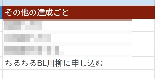 枠外にそのほかの達成したぞ!と思ったことリストも作ってあるんだけど、三が日でやったことの1つにちるちるBL川柳を投稿したことがあるの、なんかいい2026年を迎えられそうな気がしてしょうがないです。
