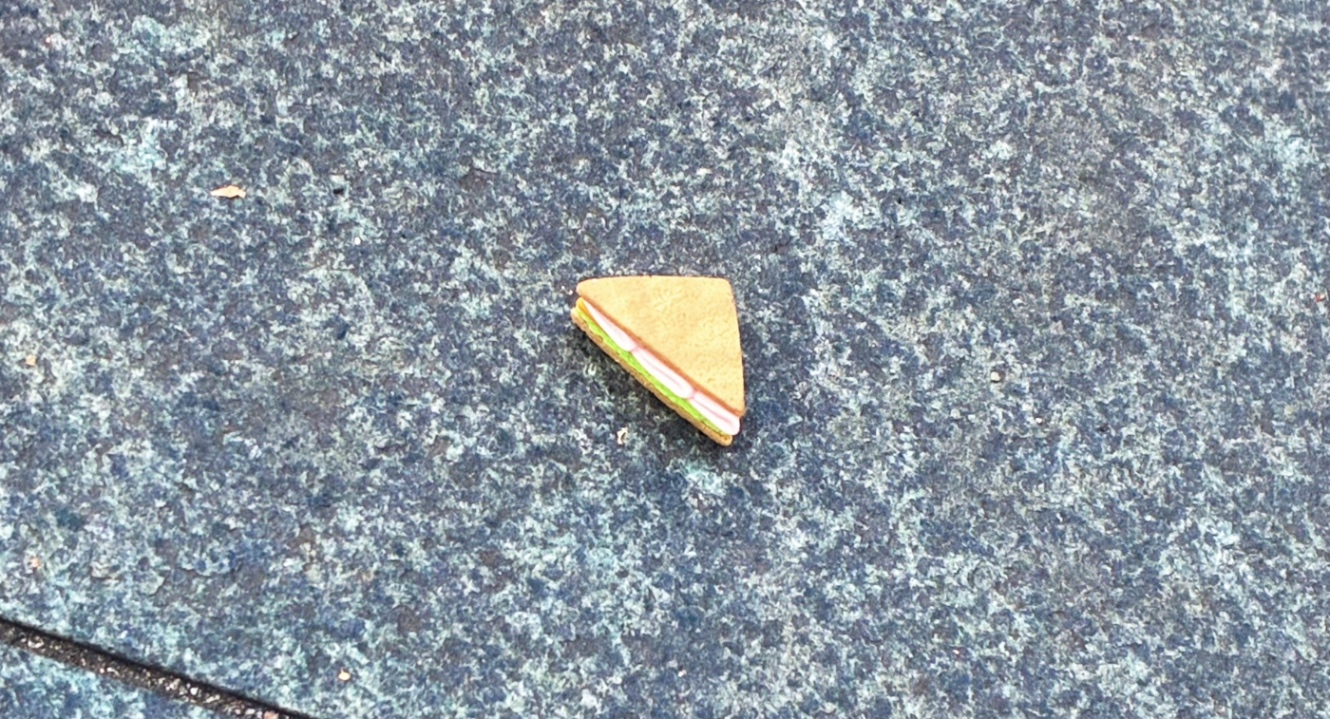 道に、小さくて食べられないサンドイッチが落ちてた。あつ森の世界?