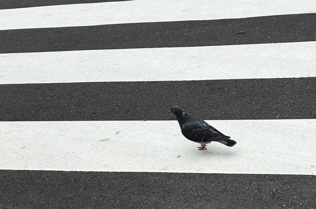 外を歩いているとわざわざ青信号になってから横断歩道を歩いている鳩を見つけたので思わず写真を撮ってしまった。と、飛んだらどうですか……? 羽って便利だろうし……。