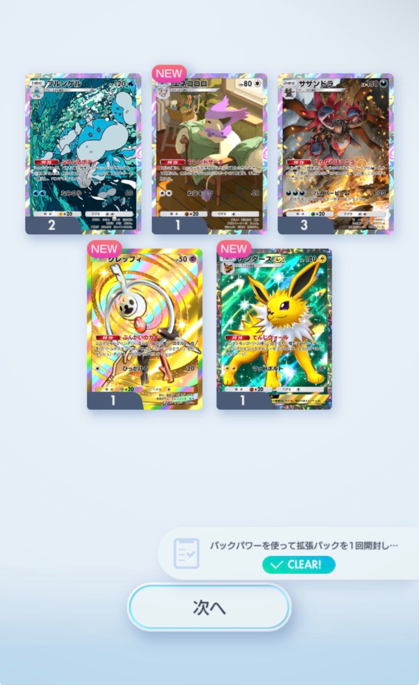 ポケポケでゴッドパックを引く。嬉しい。クレッフィのレアは何? どういう基準で選ばれてる?