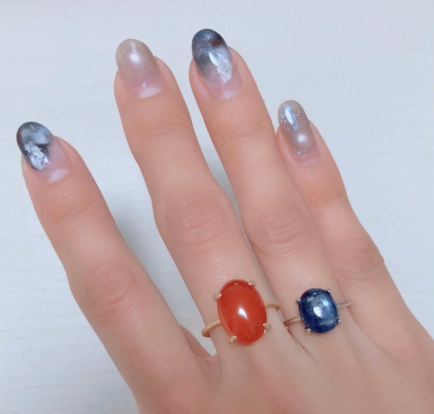 用事があって冬インテに一般参加していたので、せっかくなら何か買って帰りたいなとアクセサリーエリアを徘徊していて見つけたものを購入。左がカーネリアン、右がカイヤナイト。青い石の取り扱いが結構豊富でどれにしようか迷ったんだけど、このカイヤナイトが一番綺麗に輝いていたのでお迎えした。天然石アクセサリーはブランドものだと結構なお値段がするので(もちろん良質な金属素材が使われているからだけど)お値打ち価格で好みの石をお迎えできていい買い物をした。ちなみにこの日のインテは極寒だったので途中から合流した友人と震えながら買い食いをし、強風(激寒)に悲鳴を上げつつ駅までの道を歩いて帰ったのであった。