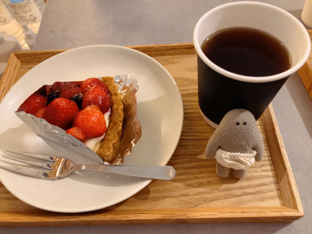 中崎町で見つけた小さなケーキ屋さん。イートインの席が二席だけあるみたいだけど、基本はテイクアウト向けみたい。お店の雰囲気もよかったし、ケーキもかわいくておいしかった。また行く機会があれば、今度はシュークリームかチーズケーキを試してみたい。