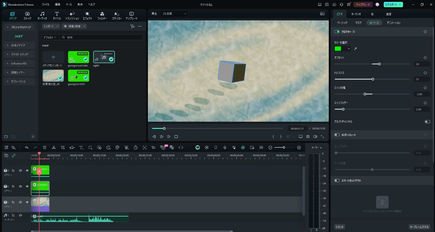 これを両方透過し、二番目のトラックもクロマキー合成をオンにして背景をつけるとこんな感じ。