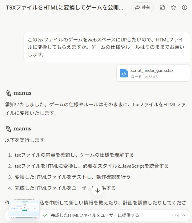 ◆Claudeに修正依頼して完成。HTMLの作成はManusに頼む。