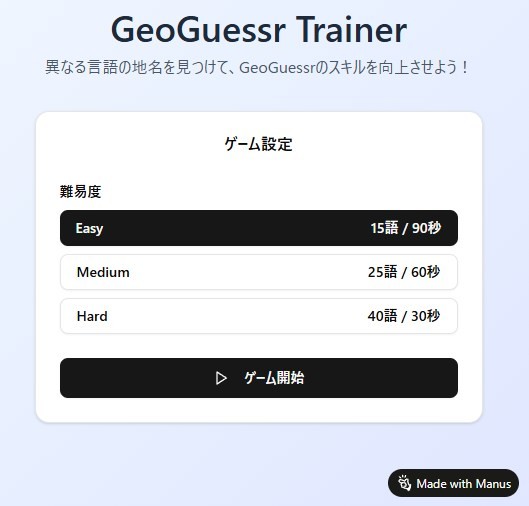 このゲームで遊んでみたい人は以下のManusの公開URLから遊ぶことができると思うので試してみてください。