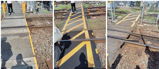 おそらくここだけの敷設されたレールが3種類の踏切。
