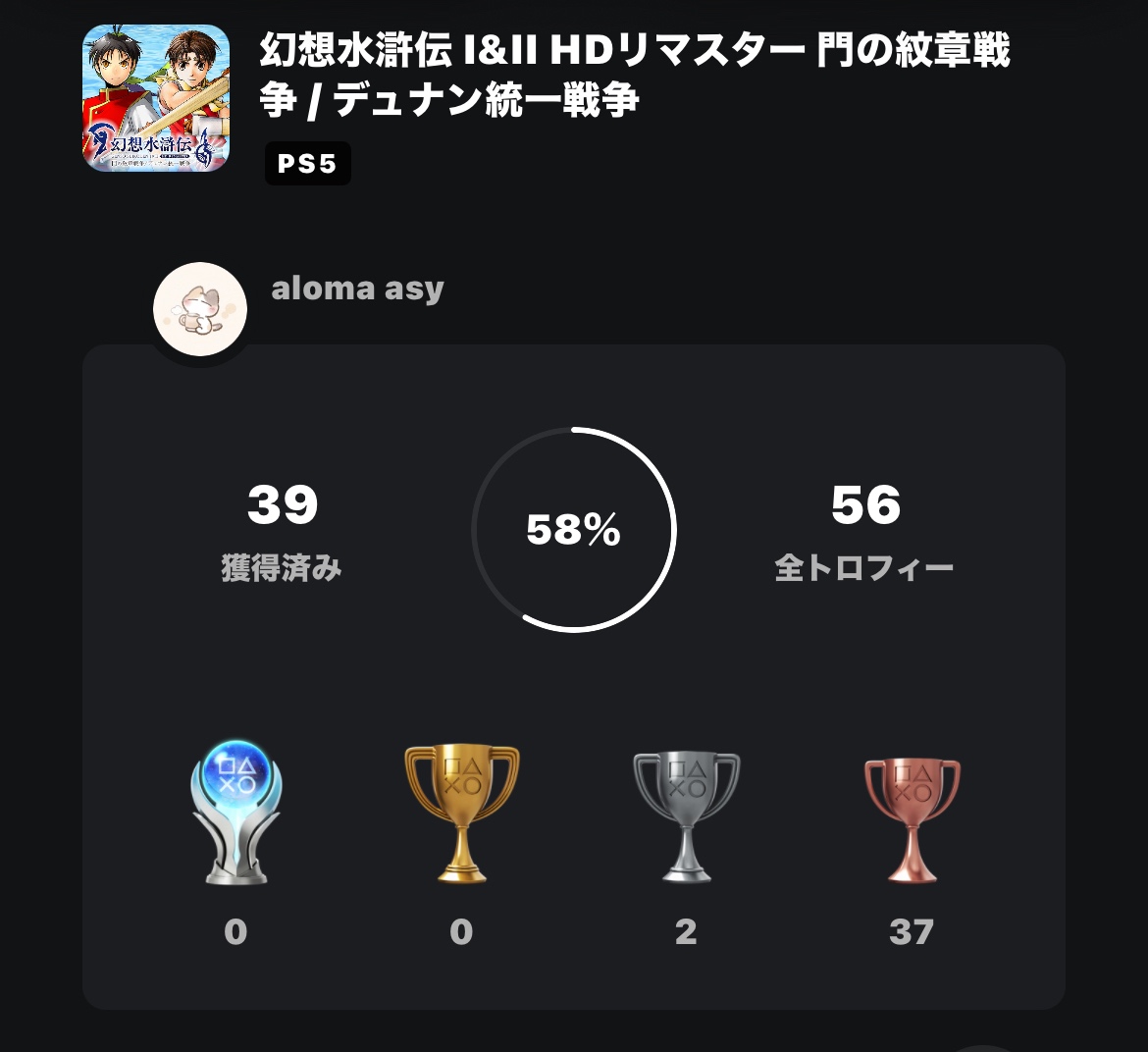 トロフィーはⅠ、Ⅱ合わせて58%。