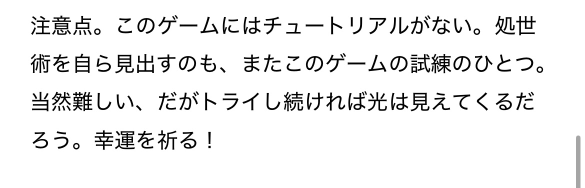 ……くらいしか語ることが出来ないと楽しみを伝えられないので、次はチュートリアルを損なわない程度でこのゲームの醍醐味も少しずつ解説しよう!