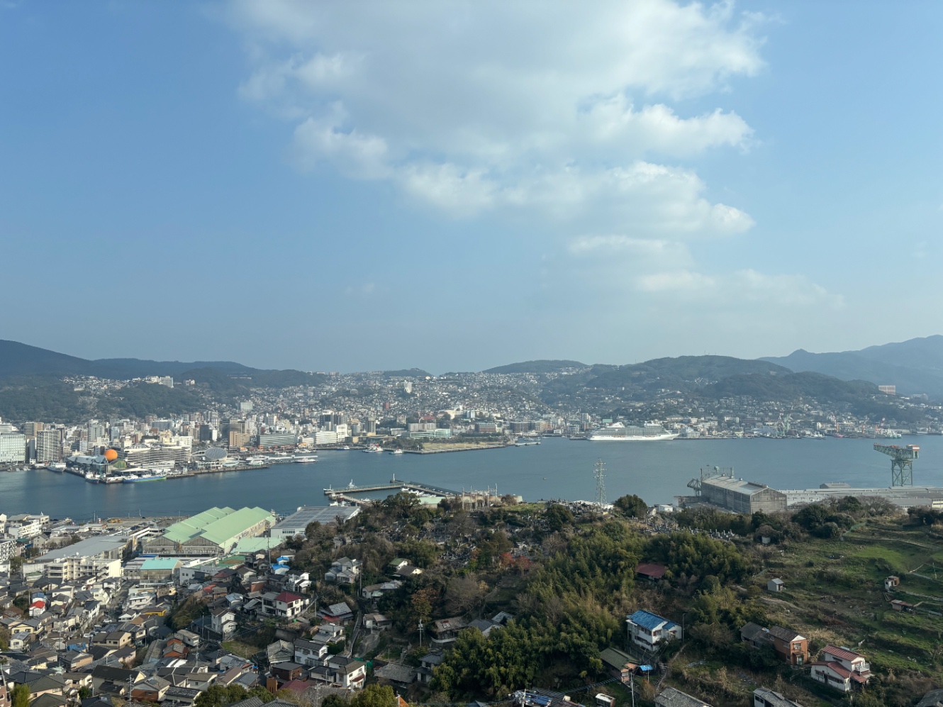 宿の露天風呂からは長崎の街が一望できる。トンビが円を描きながら上昇していくのを目で追いつつも景色を楽しんだ。