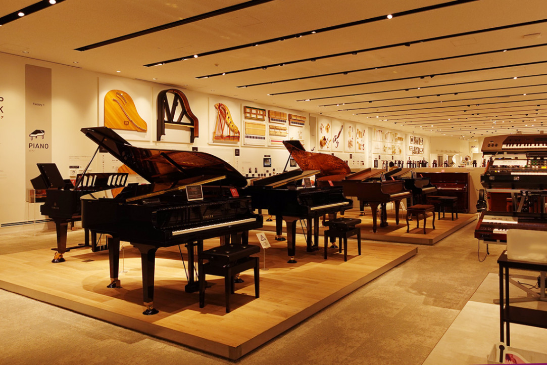 こちらは予約制・時間制限はあるのですが、多くの楽器が実際に体験できるようになっています。グランドピアノや電子ピアノはもちろん、ギターなどはアンプに繋いで楽しめますし、ドラムは防音室で叩くことも。