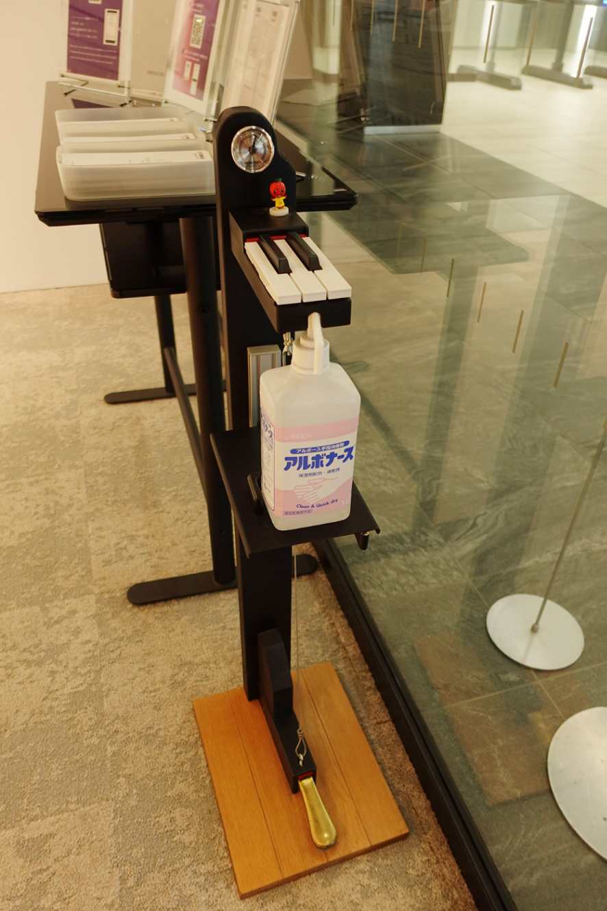 ピアノ仕掛けの消毒ボトルがユニークで素敵!