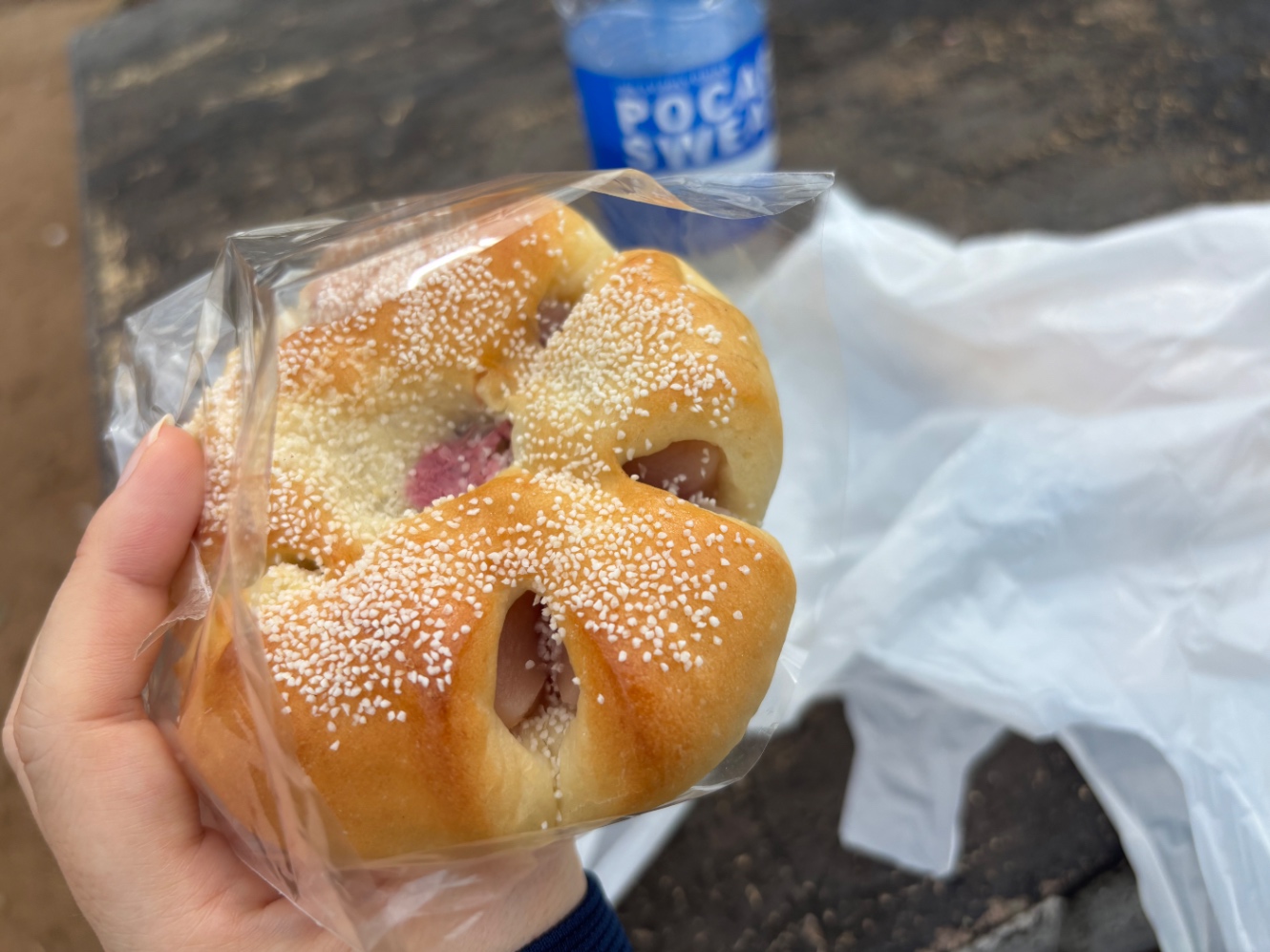 桜を見ながら、桜あんパンを食す。