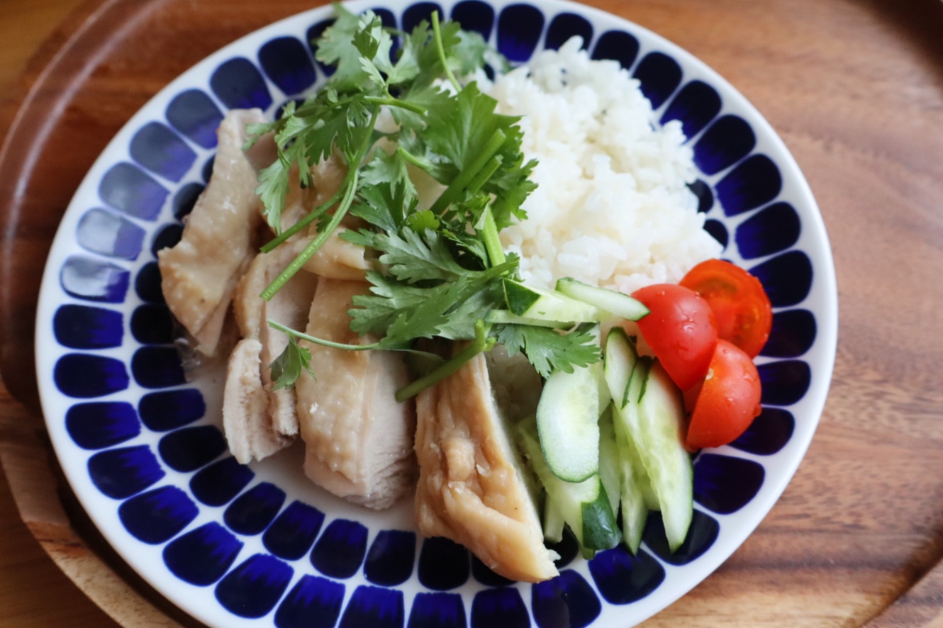 2026/4/14 昨晩急にカオマンガイが食べたくなり、鶏もも肉と生姜の塊を買って帰った。鶏もも肉を蒸し、滲み出した鶏脂と生姜とで米を炊飯セットしておいた。脂をまとった日本米はさらりとほどけ、タイ米のような香りと触感となりよい。冷蔵庫にあったパクチーやキュウリなどを添えた。工夫次第で何でもそれらしく作れるので、料理というのは飽きない愉しみだ。