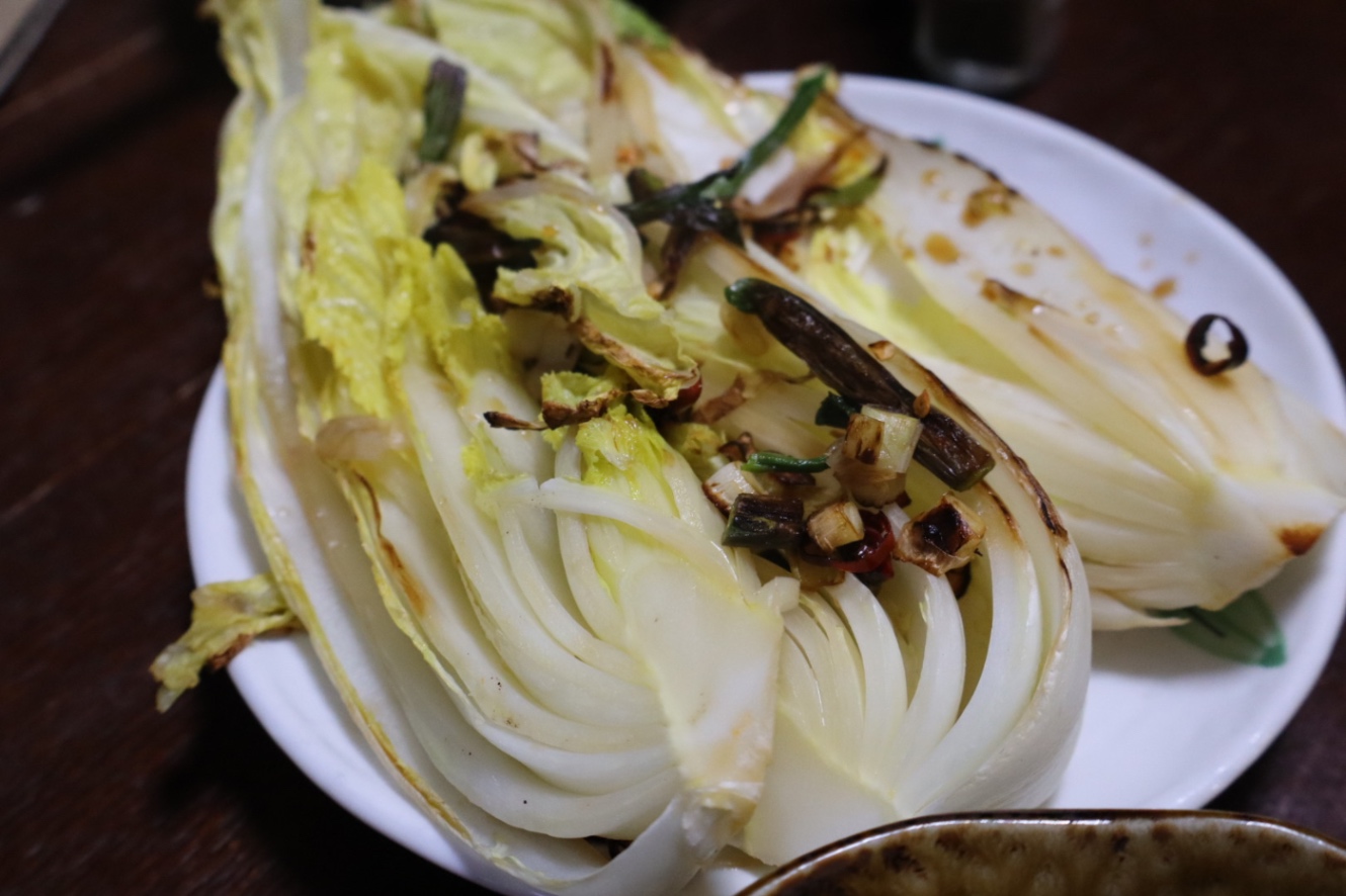 家に帰ると、朝は早いし、日頃の疲れもあってか炬燵で寝てしまう。隣でSも一緒に爆睡している。いつも遅くまで仕事おつかれさま。起きると5時になっている。2玉240円だった白菜を贅沢に使い鍋に。それから白菜のグリルというものを試みてみる。行者ニンニクと鷹の爪をオイルで炒め、そのオイルで白菜を蒸し焼きにする。白菜が甘くなって美味しい。グリルと鍋とで白菜ひと玉をぺろりと平らげた。