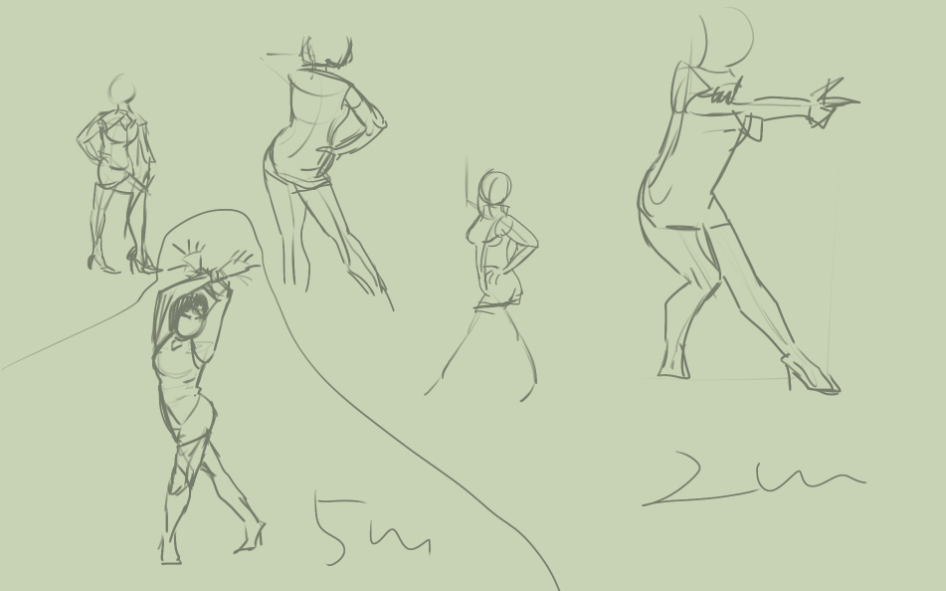 2分と5分、時間的にもう少し描けるけど加筆する余白が無くて数秒手持ち無沙汰になる