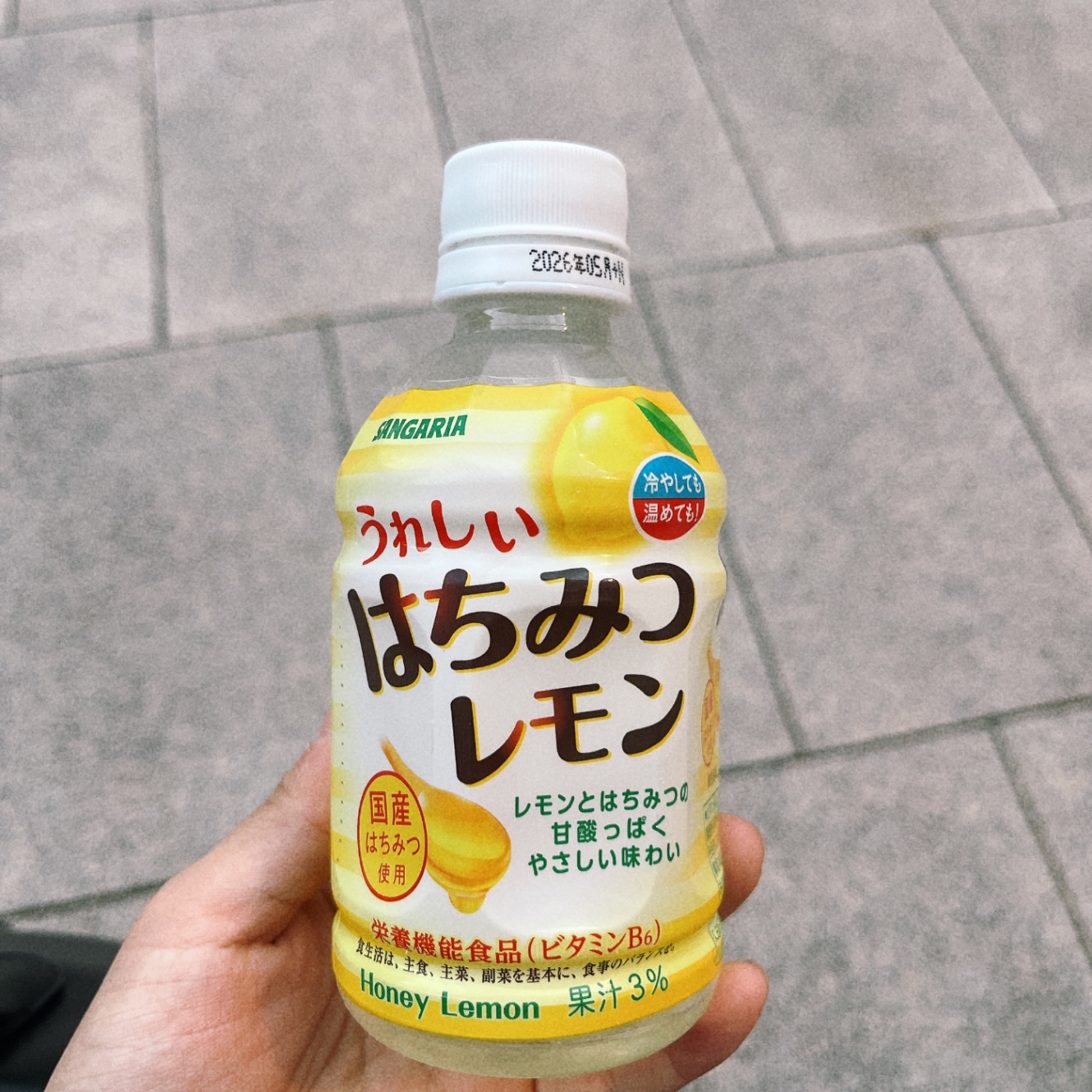 駐車場で買ったはちみつレモン。