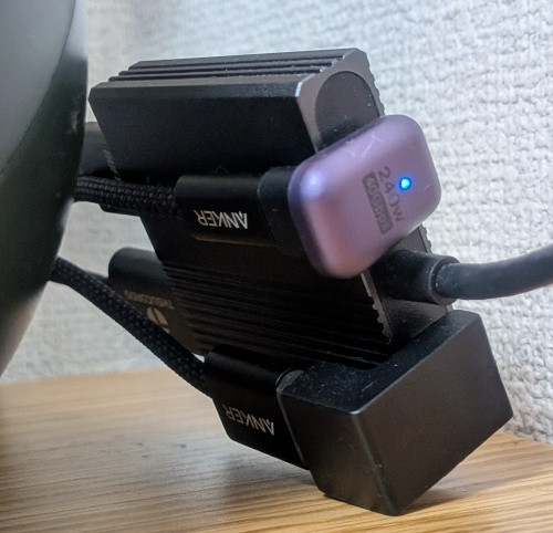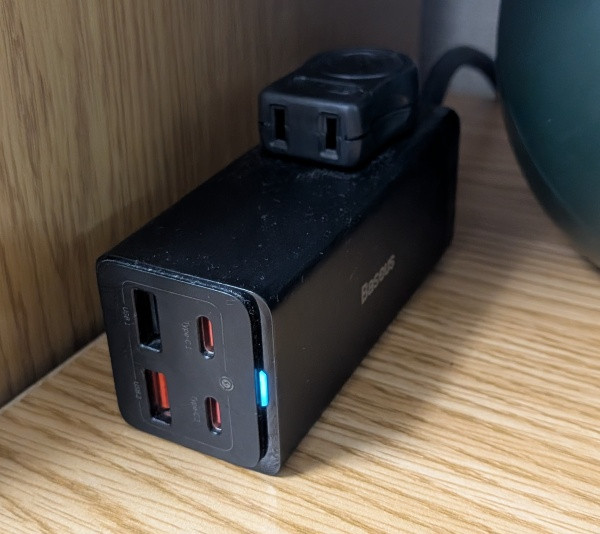 ⓘ 65W 1ポートのUSB充電器。ⓃのUSB PDポートにつながっていて、在宅勤務時のノートPCへの電源供給用。