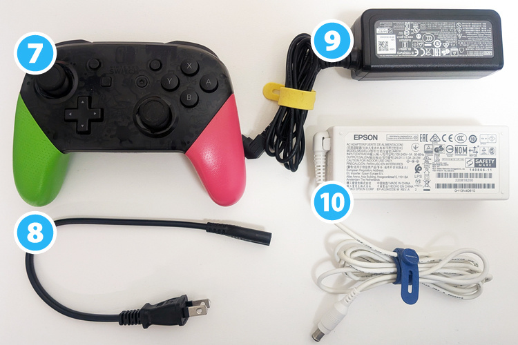 ❽ 短いメガネケーブル。❾と❿はどちらも机上で使うので、製品に付属していた長いケーブルは不要で、かつ両方を同時に使うこともないので、短いケーブル1本で置き換えた。