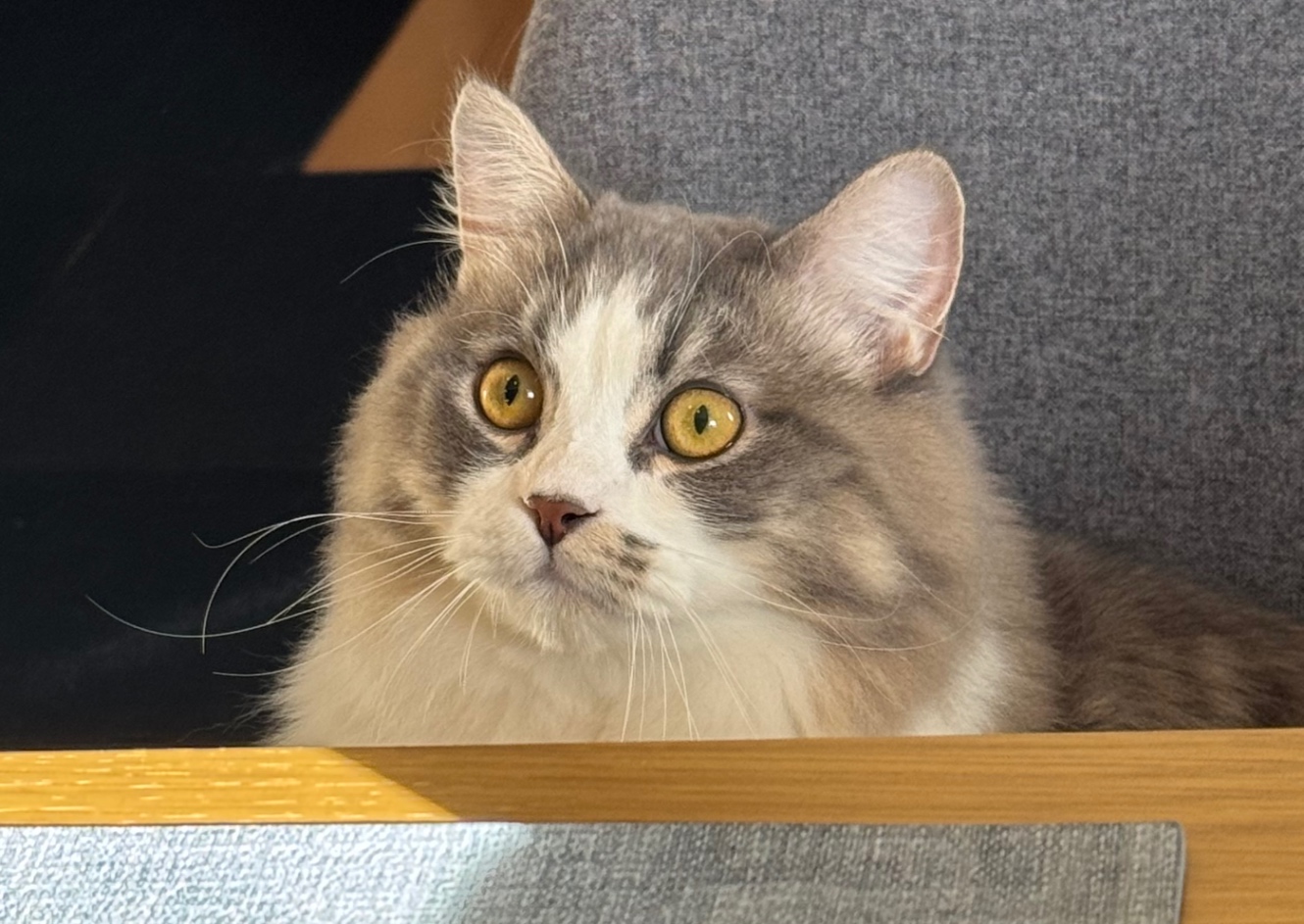 いざ一緒に暮らしてみると人間が大好きな甘えん坊でしょっちゅう人間についてまわっている。