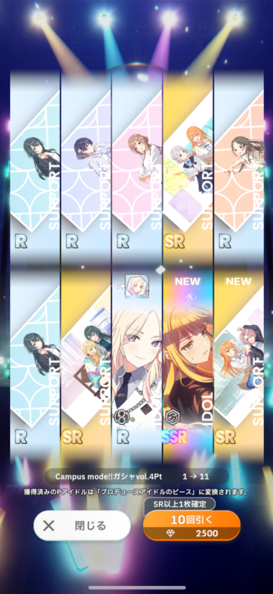学マスでは今日から開催された清夏とリーリヤガシャのうち、10連で清夏が来てくれた。嬉しいねぇ。