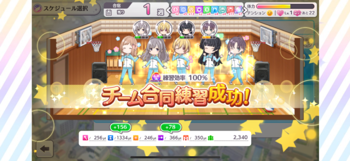 立ち回りはまだよく分かっていないけど、前回のSTEPよりさらに強化出来そうだ。何名かのアイドルを選択してレッスンをしたり仕事をしたりする。このわちゃわちゃしている感じは感謝祭を思い出す。