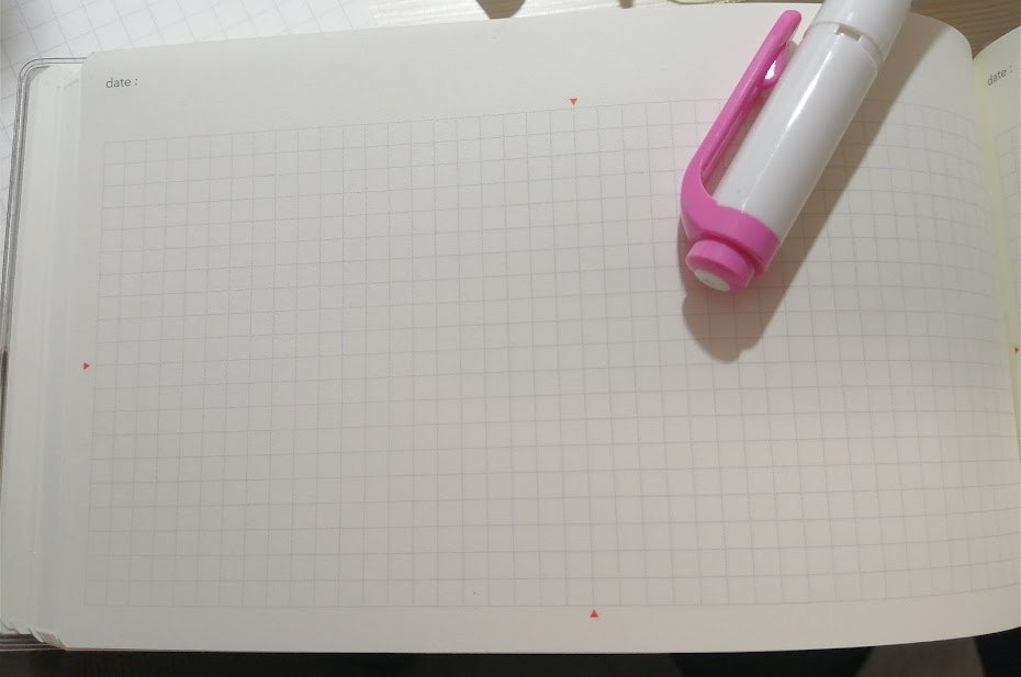 ヒューチャーログは、方眼を縦3分割して記帳。見開きページ×2で運用。