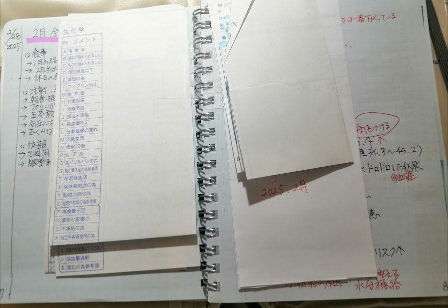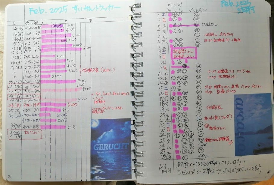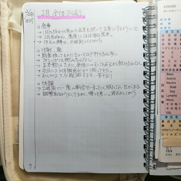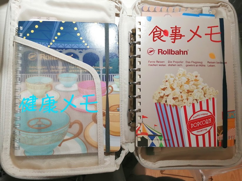 食事メモはこのノートに直接記録するのではなく、システム手帳に食事ログの付箋を貼っておいて記録して、貼り替えるスタイル