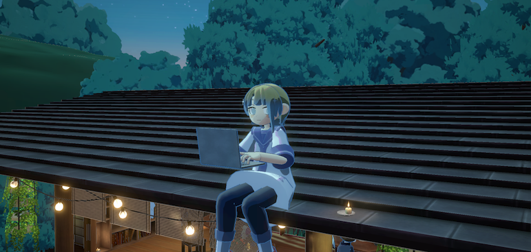 これは屋根の上で作業している自分(座る場所はいろいろ選べる)