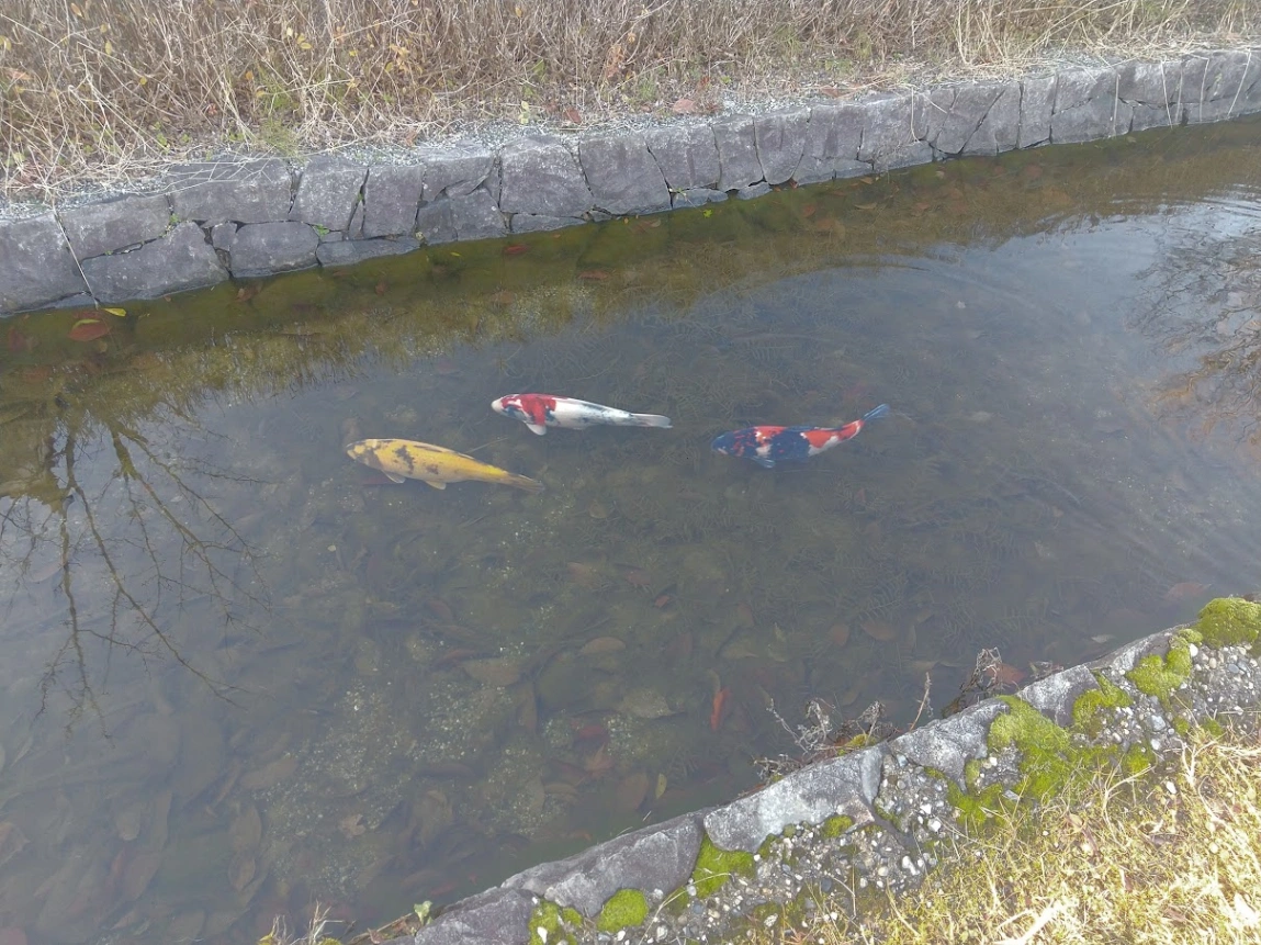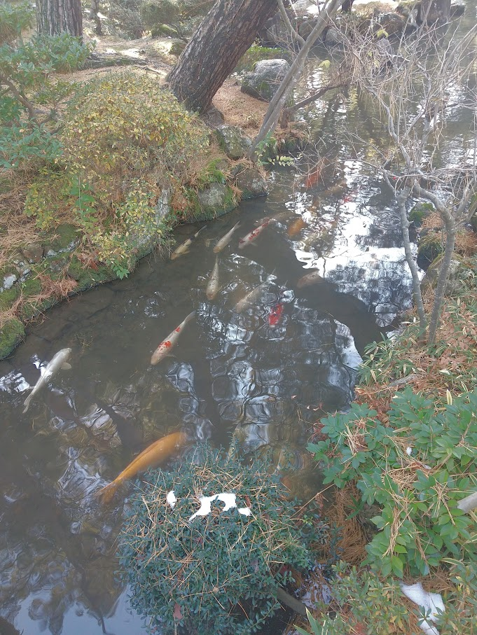 公園内のお堀に高そうな錦鯉が放し飼いされている