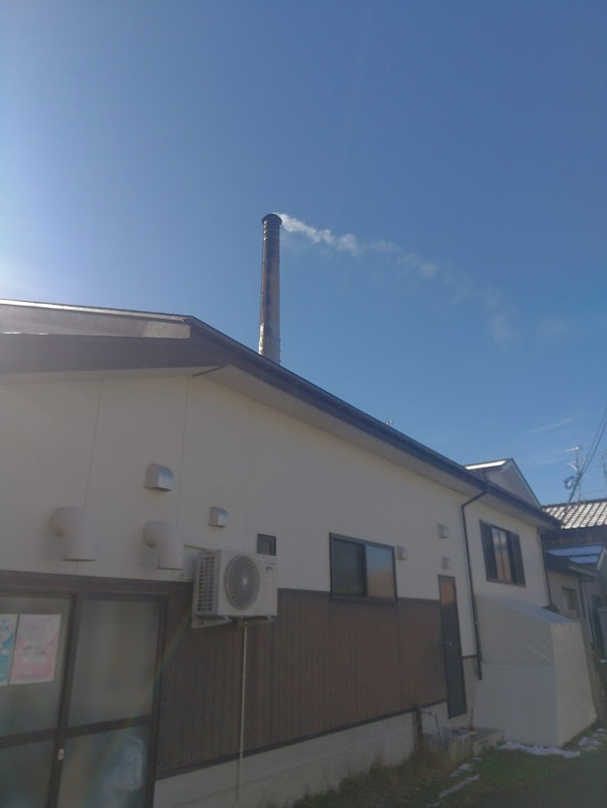 冬の快晴にたなびく煙突の白煙 ノスタルジックな風景だ