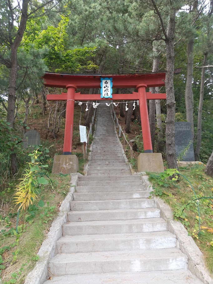 熊の気配とおじさんの出現にびびりつつ、神社でお参りして公園を後にした