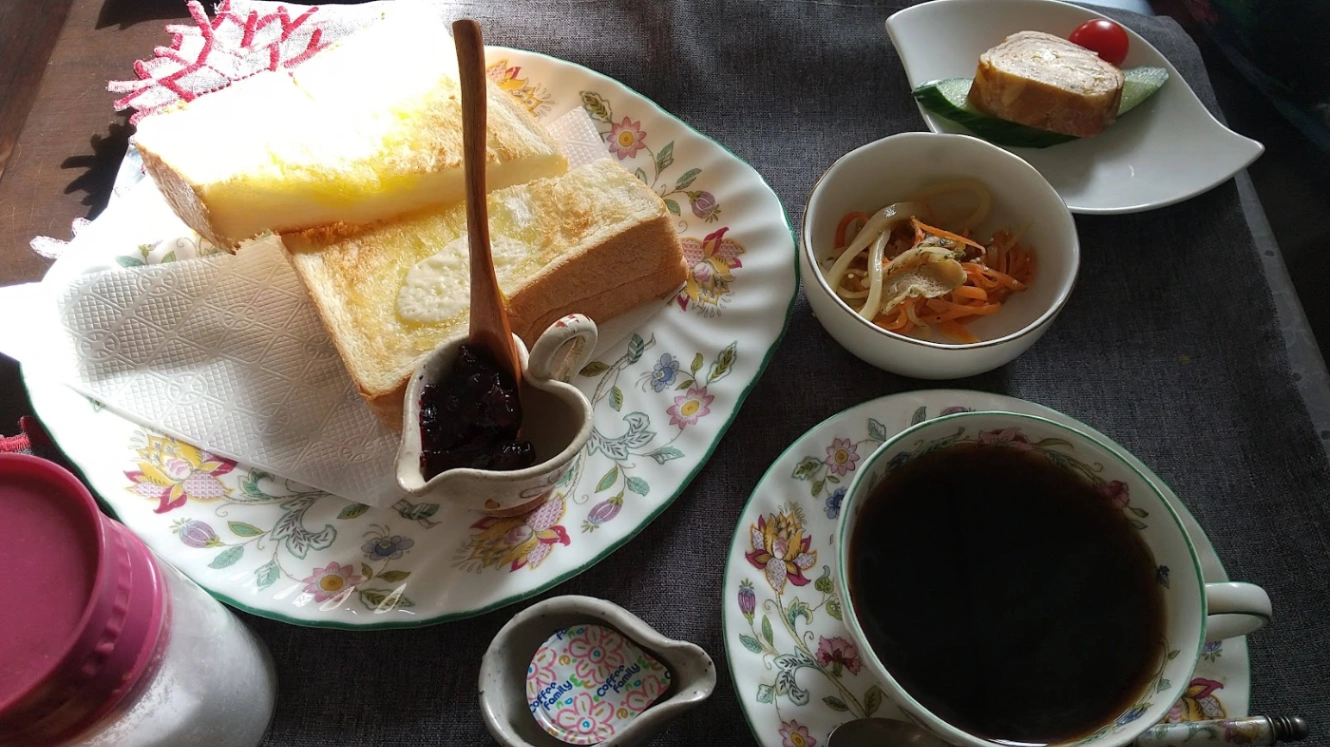 私は厚きりトーストとコーヒーを注文