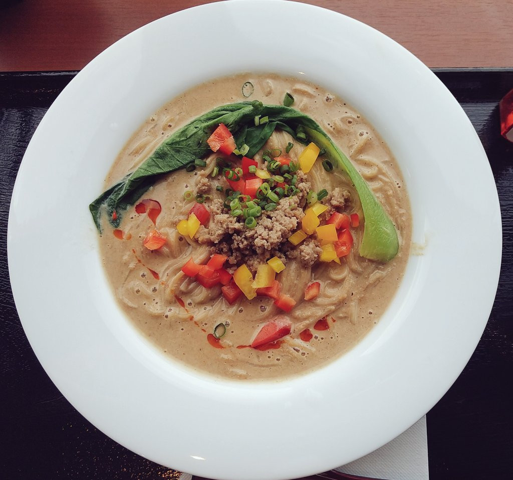 担々麺めっっっっちゃ美味かった…!!!!! 麺が生パスタで、今まで食べた担々麺(のアレンジ)の中で一番美味〜!!! また食べたい…!!!