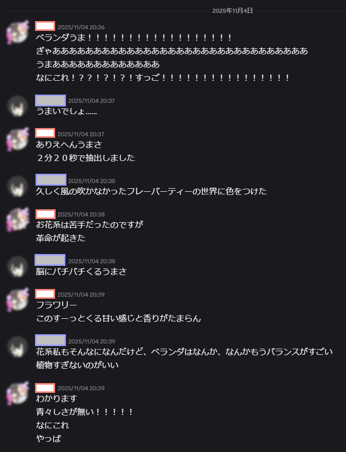 なんかね、ある程度知ってる人は香りの組み合わせでだいたいこんなもんでしょってのが想像できると思うんですけど、それをバチコリ超えてきます。通販在庫はSOLD OUTだけど、店舗ならあるかもなのでぜひ試してほしいです。