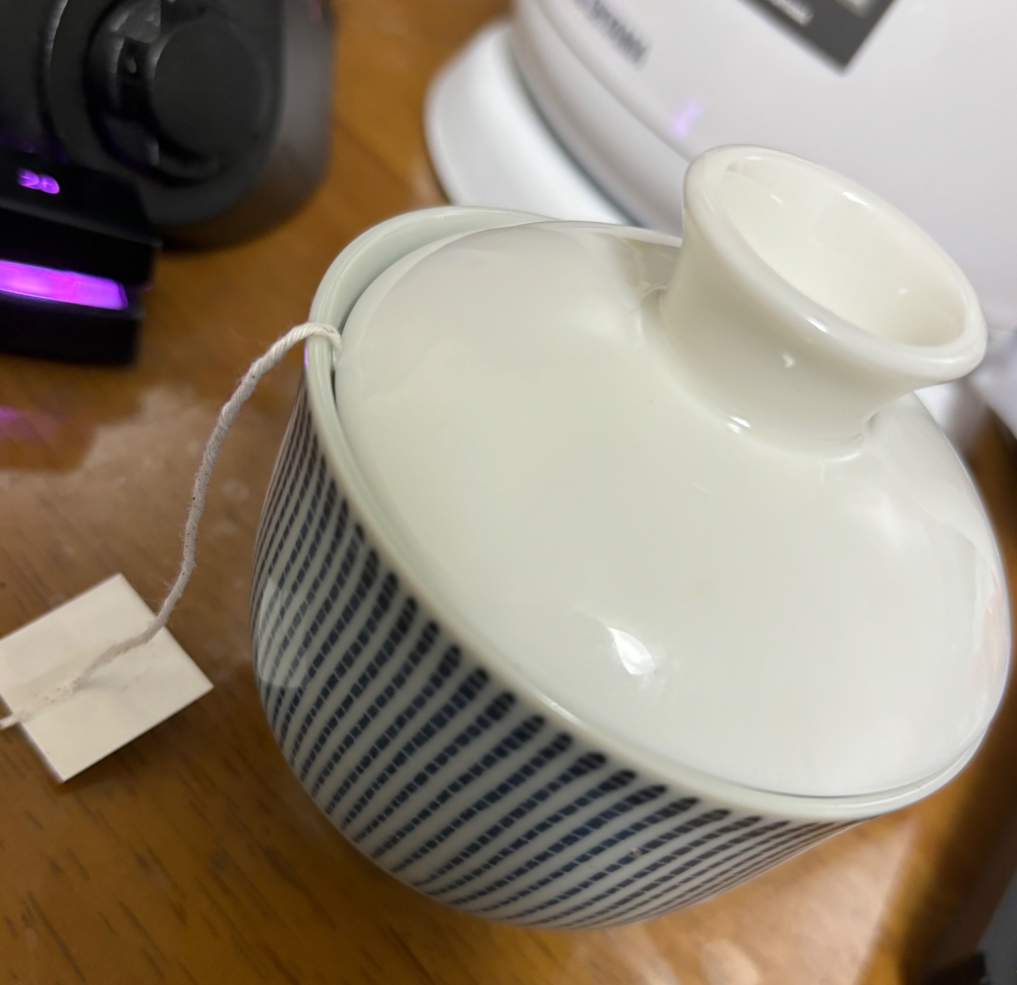 カメラロールを遡ったら、湯呑と蓋碗のフタでティーバッグの紅茶を入れる写真があった。これが本当のグローバリズムです。