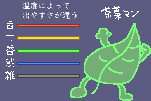 まぁ……そういうわけで、お茶のどんな成分を出したいか、あるいは出したくないかによって抽出湯温が決まる……んだけど、茶葉を見て抽出方法・温度・時間を判断するのって難しいよね。それは覚えていくしかない。