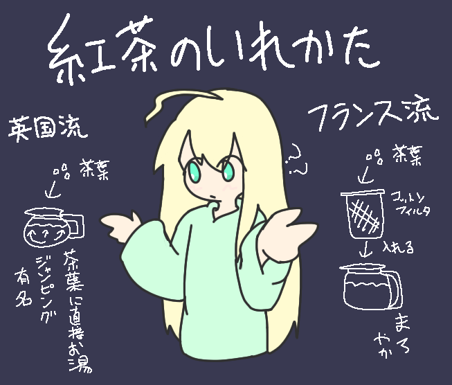 じゃあそういうのを避けつつ、「紅茶好き」が相手にどういった印象を与えうるかを考えられるよう、周辺知識の整理をしてみよう。紅茶にこだわりがあるキャラクターをやる上で入口になりそうなことを書いてみようと思う。