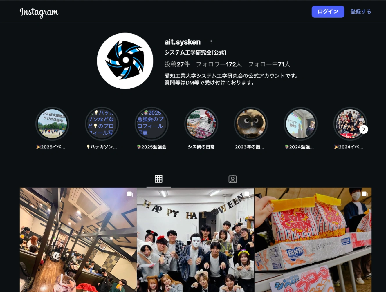 さて、自分が所属していた「システム工学研究会」は愛知工業大学公認のサークルで、IT系のサークルとなっています。普段はサーバーを用いてちょっとしたサービスの運営を行ったり、ハッカソンに出て自分の実力を磨いてきたり、自分のやりたい内容を見つけて周りを巻き込みつつ開発をしたり、みんなで季節にまつわるイベントを行い親睦を深めるそんなサークルとなっています。
