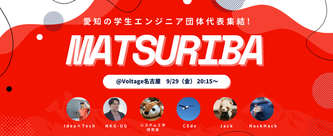 より技術力を深めるためには、周りのエンジニアとの交流はとても大事です。新しい技術の情報を手に入れれたり、同級生の子が自分とは全く違う考えで物事を取り組んでいる話を聞いたりすると、よりやる気に繋がります。そういった経験をするためにも、東海地区ではMATSURIABと呼ばれる団体があり、そこに所属をしました。2ヶ月に一回ほど集まり、様々な人と交流を深め技術談義をしたり、Twitterなどの交換を行い、エンジニアの輪を広げられました。