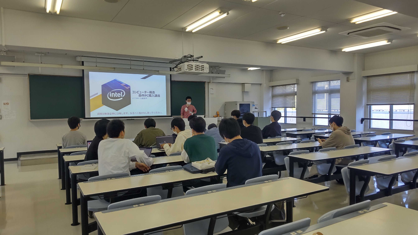この画像は、初心者向けに自作PCの作り方を教えている勉強会の様子です。https://x.com/set_official/status/1656567721457508353/photo/2