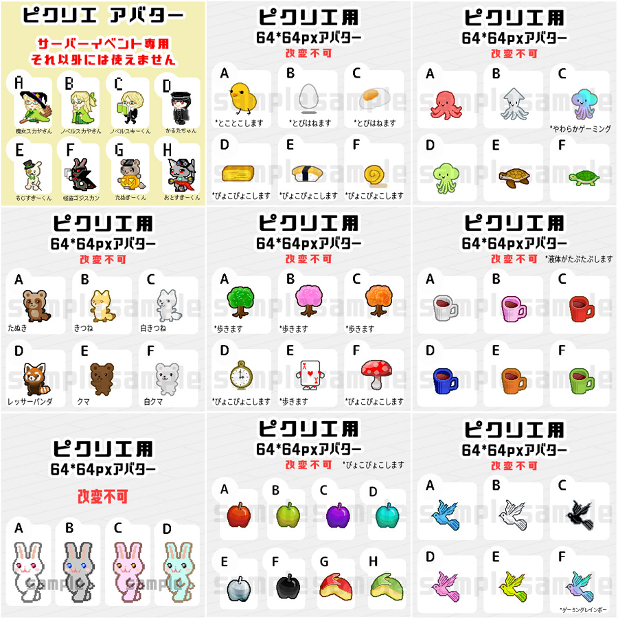 というのも、今までは別サービスである「ピクトスクエア」向けを主にしていまして。今回の「ピクリエ」は、公式が用意したデフォルトのアバターが種類豊富。なので、店舗背景はともかく、アバターの需要は低いだろう……と思って、これまで無視していたのです。