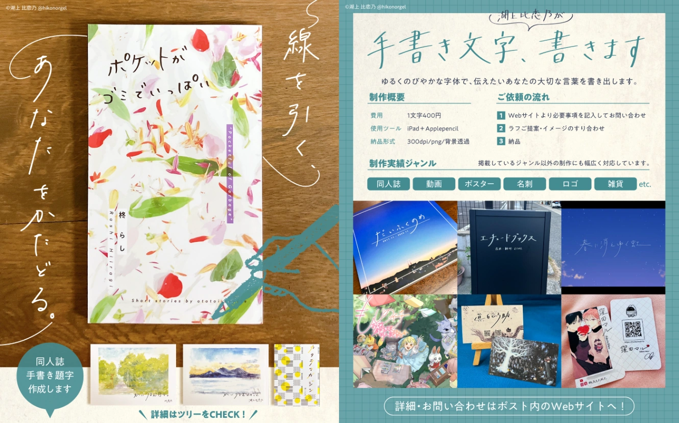 さて、アピールを頑張ったとは書きましたが、本来は自分のことを宣伝する、という行為がとてもとても苦手です。なので、デザイナーをやっている友人に宣伝画像を依頼しました。友人の仕事ぶりを広める、作ってもらった素敵なものを見てもらう、という行為は「自分を宣伝する」苦手意識を薄めることができました。