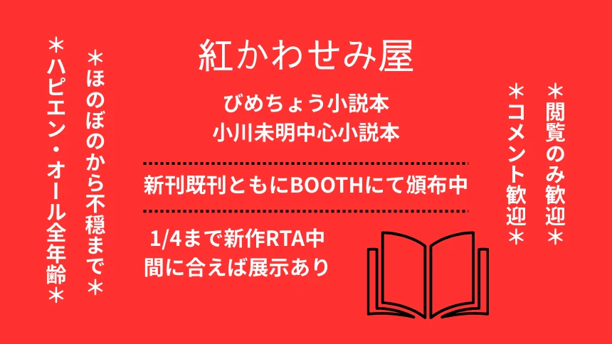 他に既刊の頒布も合わせてBOOTHで行います。また、期間中は新作RTAもしています。間に合えば新作展示も行います。