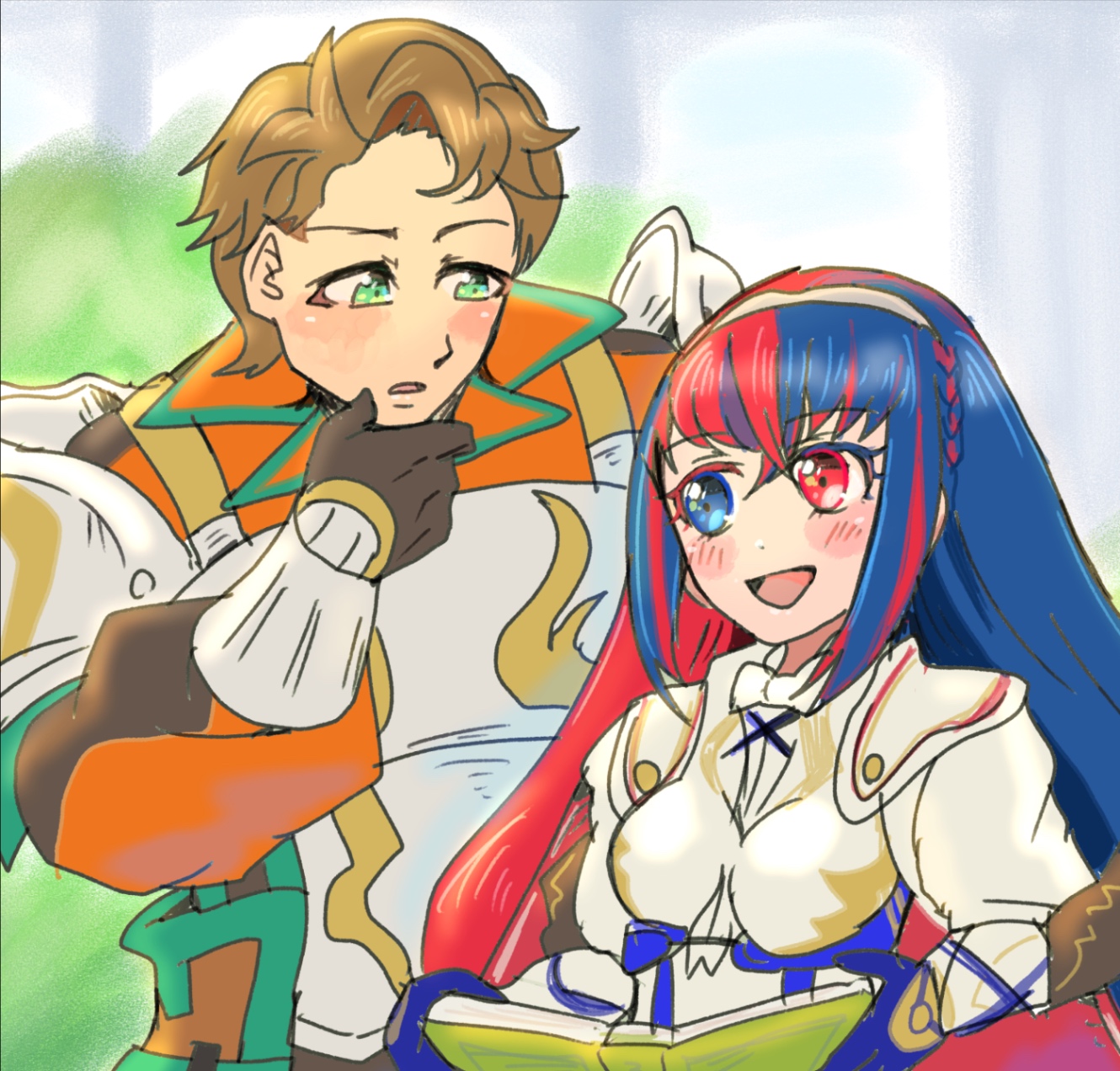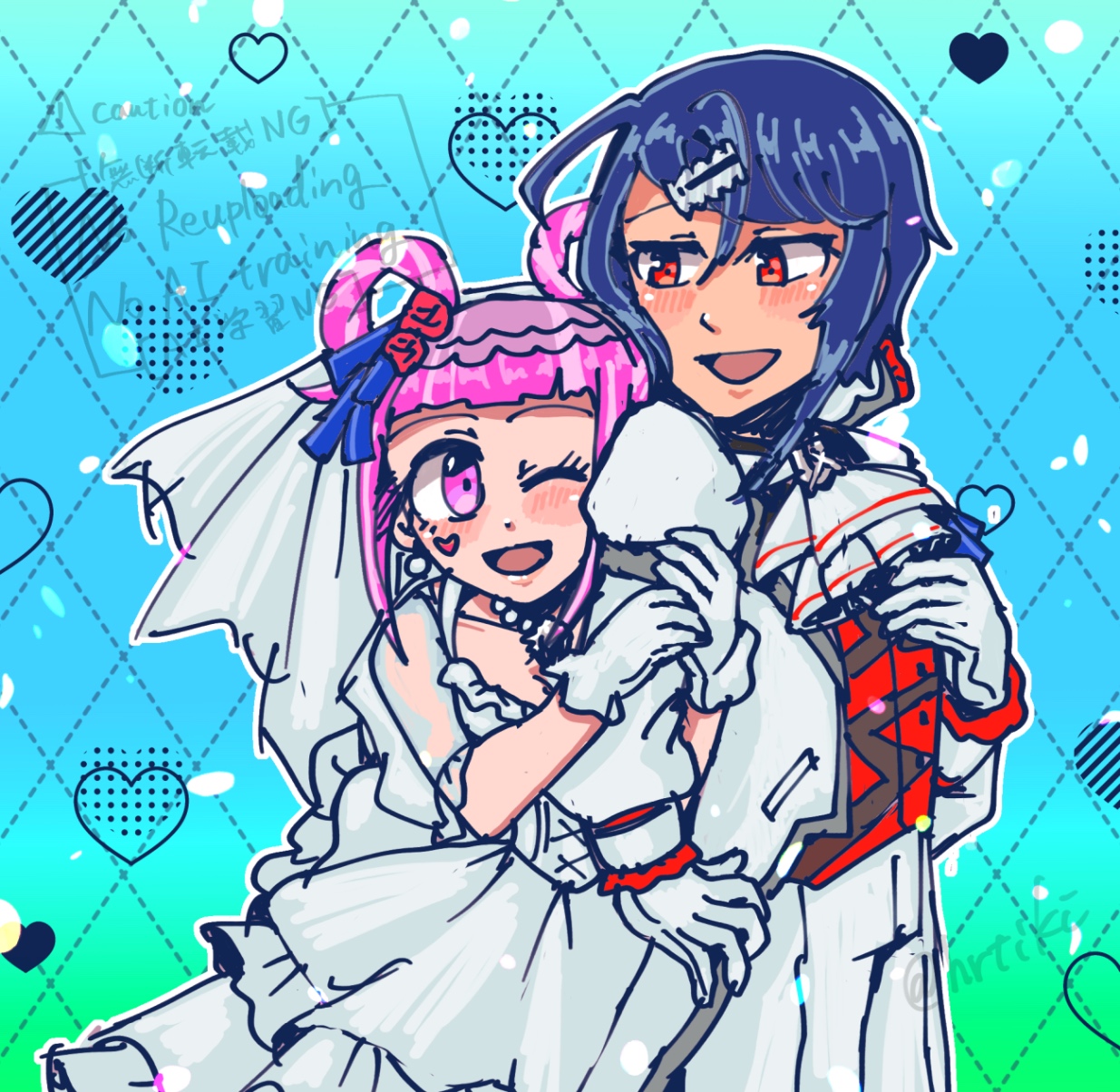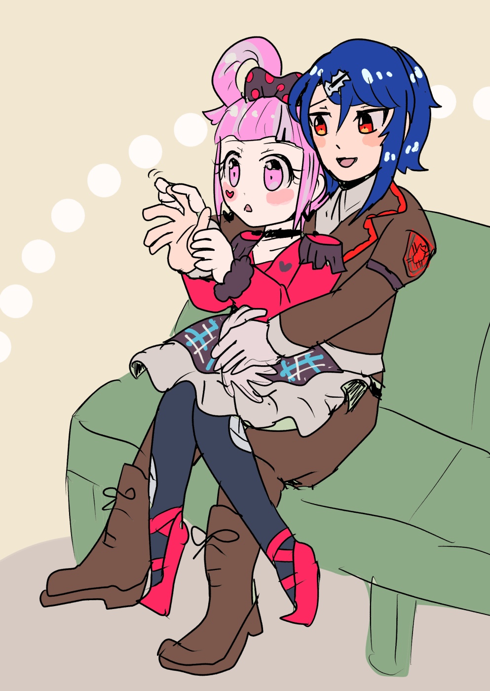 これ診断メーカーで出てきたお題で、「膝の上に座りながら、相手の手の指をいじって遊ぶ」でした。珍しいシチュで面白いなぁと思って描きましたが、思いのほか愛情あふれる感じで描けてお気に入り。今スマホの待受にしています。